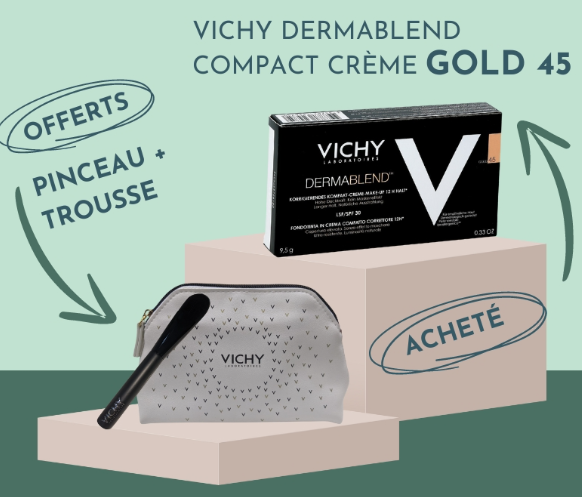 VICHY DERMABLEND COMPACT CREME GOLD NUMERO 45 + TROUSSE OFFERTE + PINCEAU OFFERT